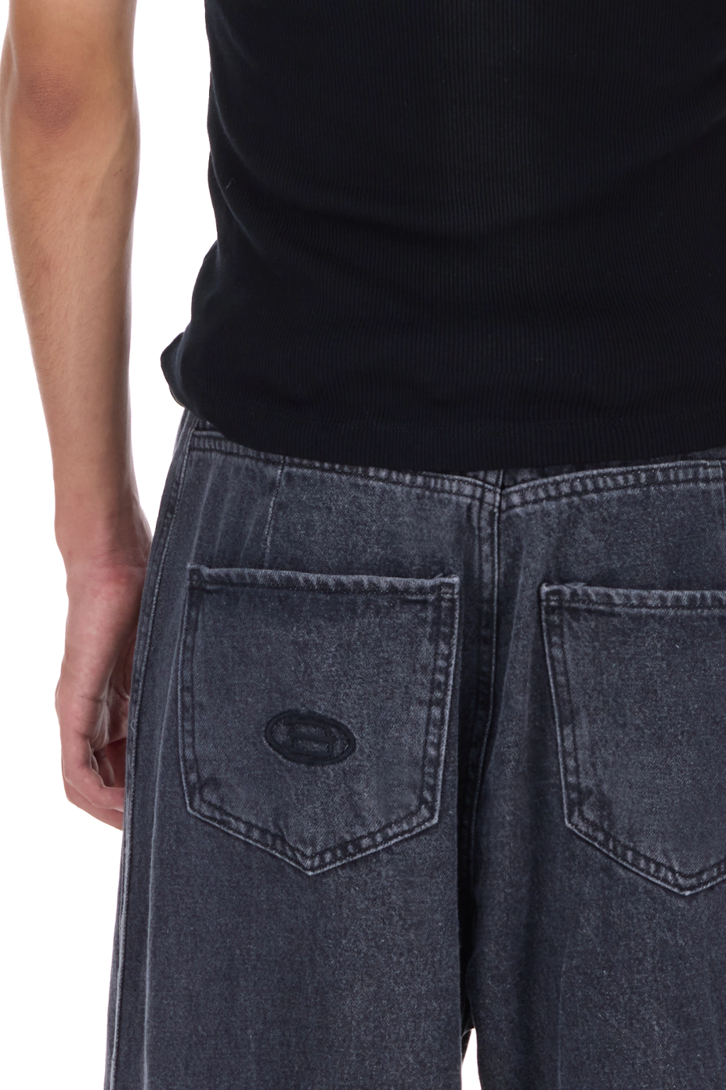 Available sizes: 1 / 2 / 3 / 4 - Gray— Baggy jeans with side slit. Embroidery on the front and back pocket. 11oz 100% cotton denim.Nahuel is 187 cm tall and wears it in size 3. Lourdes is 177 cm tall and wears it in size 2.